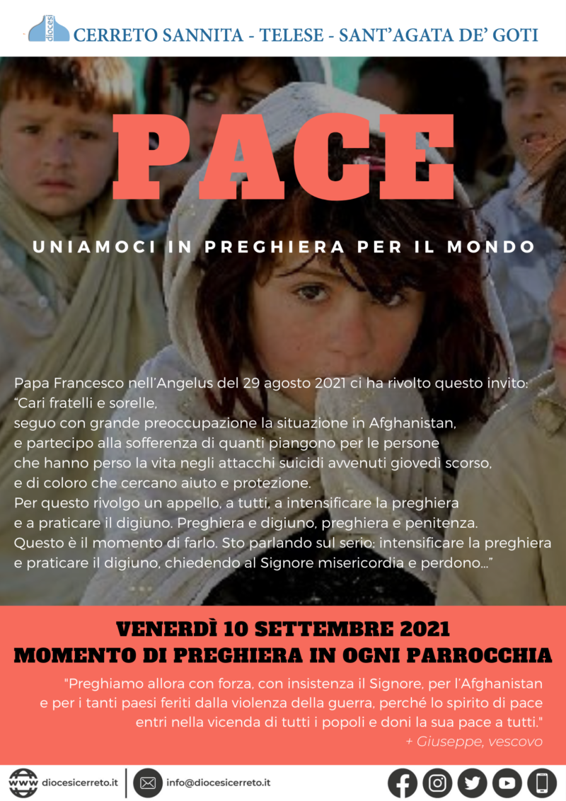 “Preghiamo allora con forza, con insistenza il Signore, per l’Afghanistan e per i tanti paesi feriti dalla violenza della guerra, perché lo spirito di pace entri nella vicenda di tutti i popoli e doni la sua pace a tutti.”