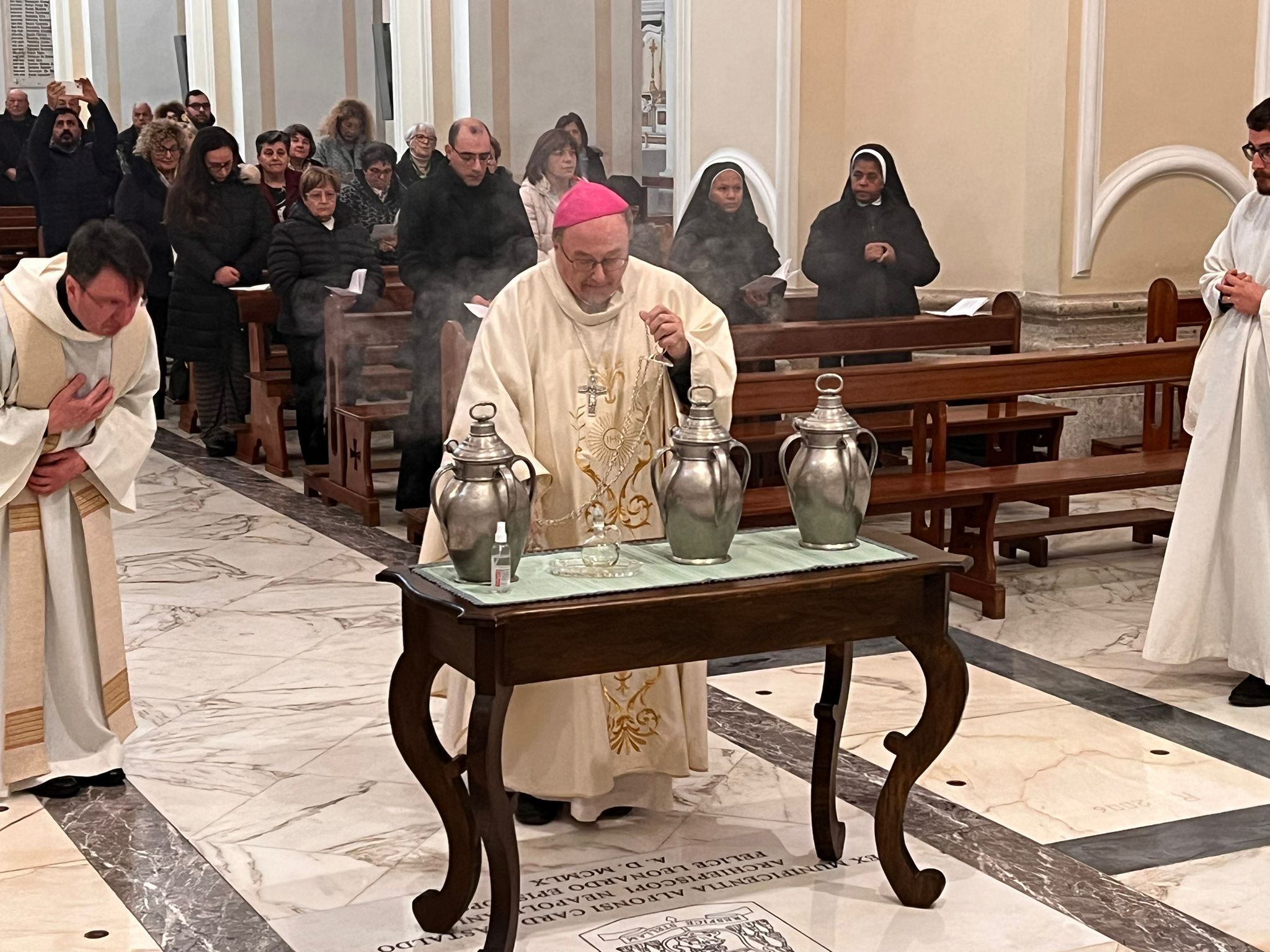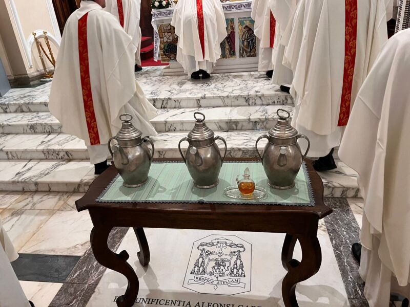 Durante la Celebrazione eucaristica i sacerdoti della Diocesi rinnoveranno le promesse sacerdotali e saranno benedetti gli oli degli INFERMI, dei CATECUMENI e il SACRO CRISMA.